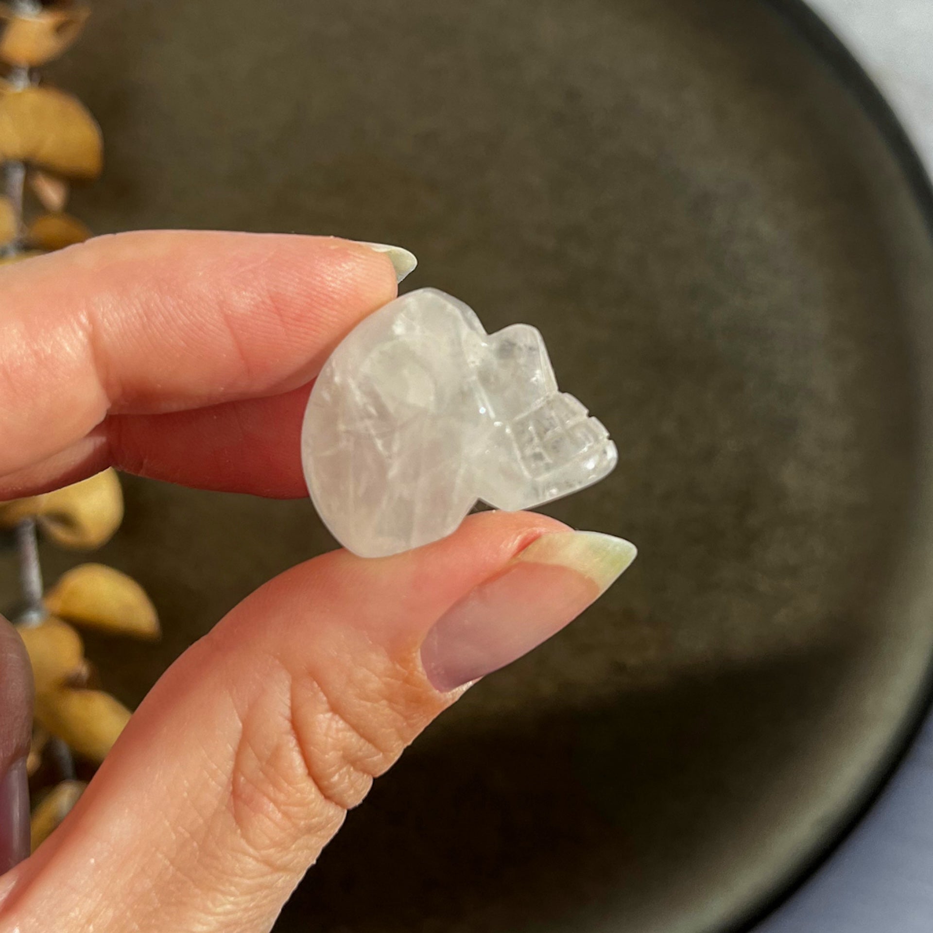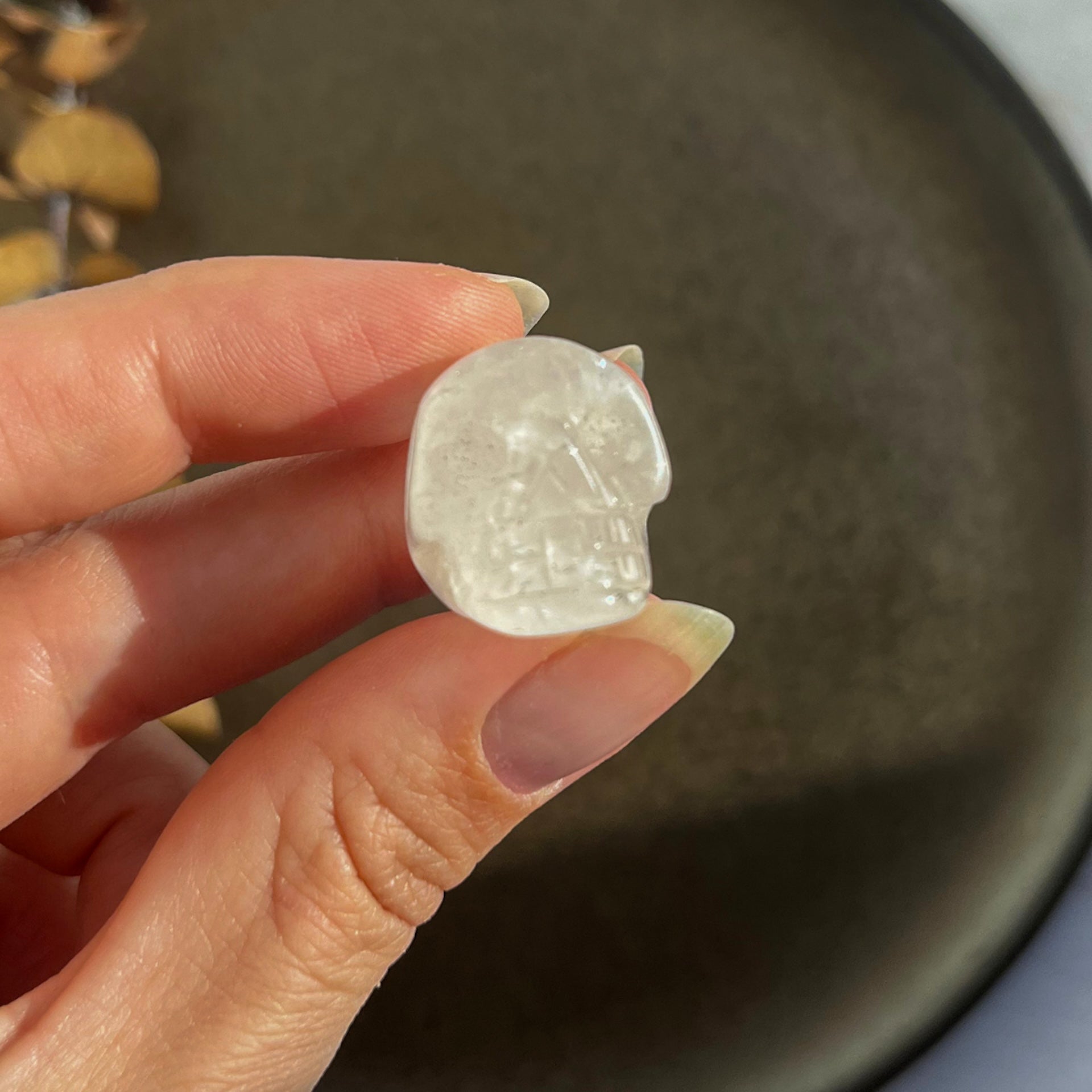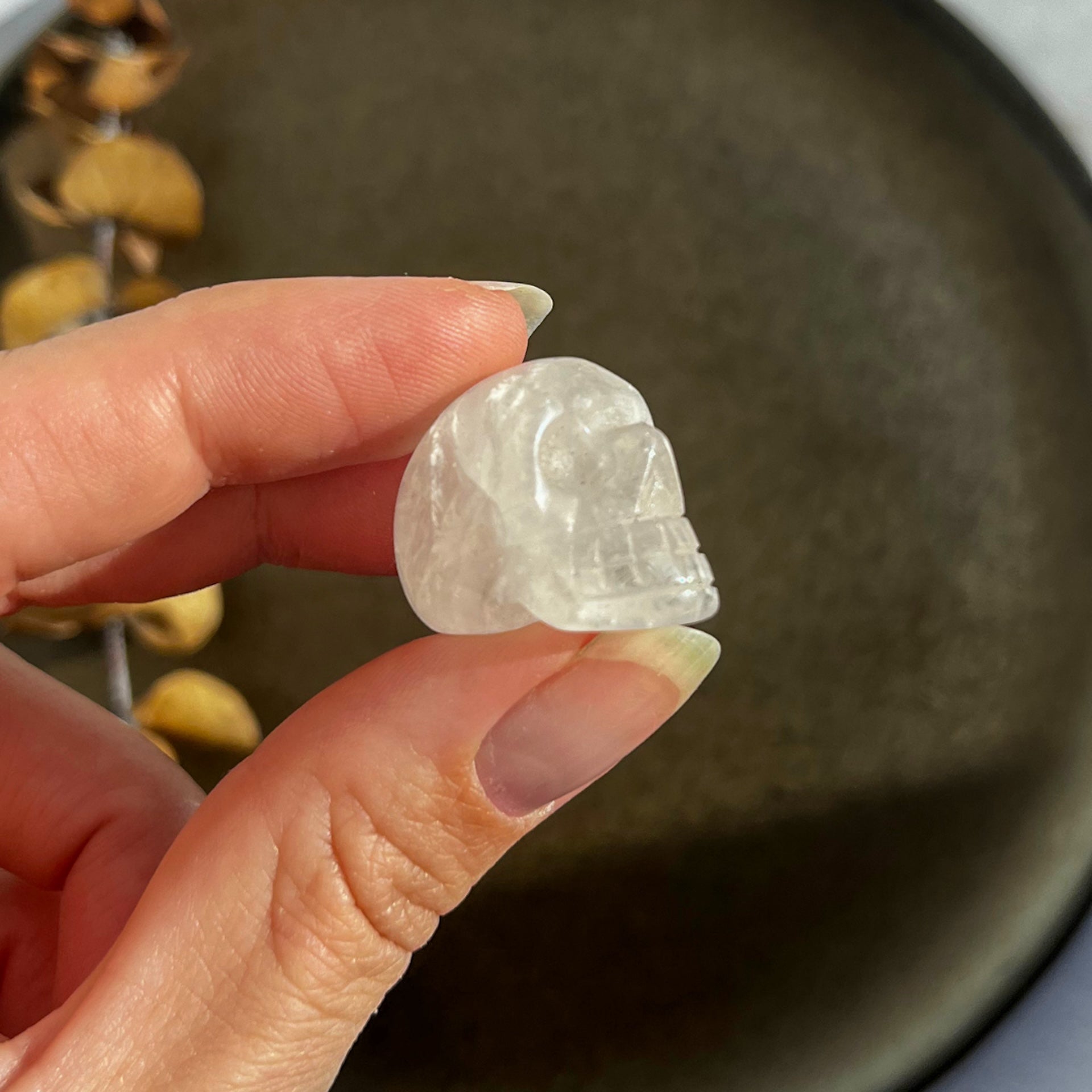 Dødningehovedet minder os om at værdsætte livet og dets foranderlighed, mens bjergkrystal hjælper os med at frigøre negative energier og skabe plads til nye begyndelser.