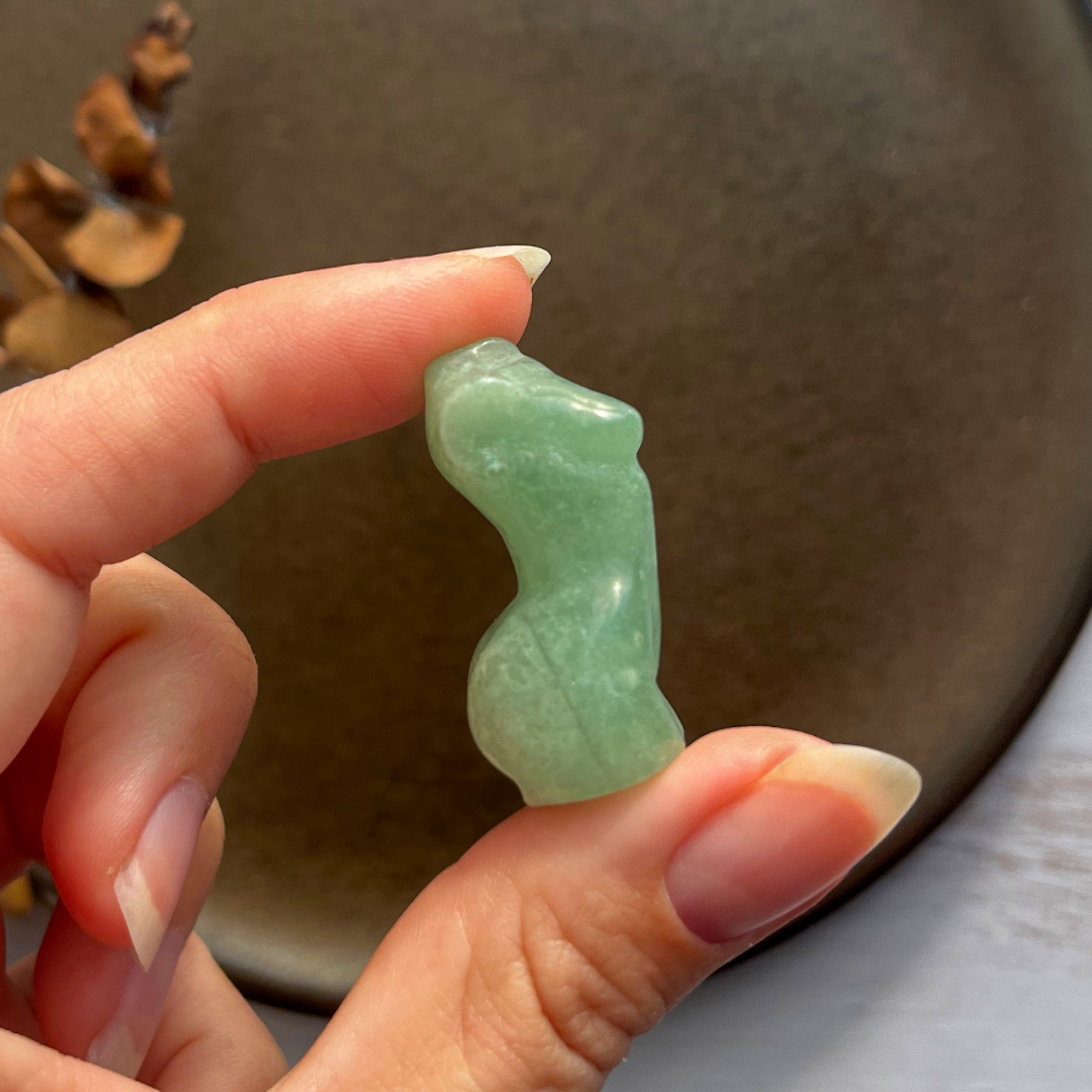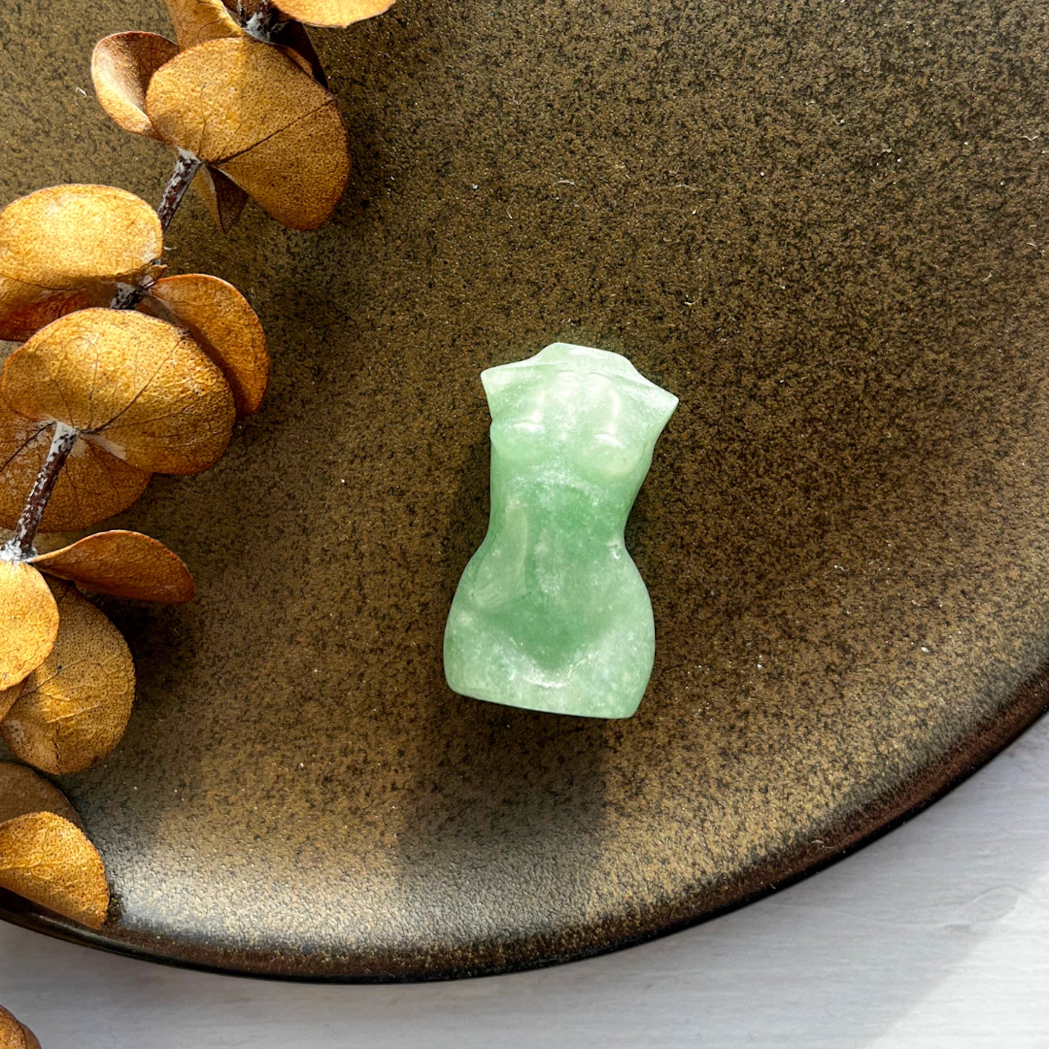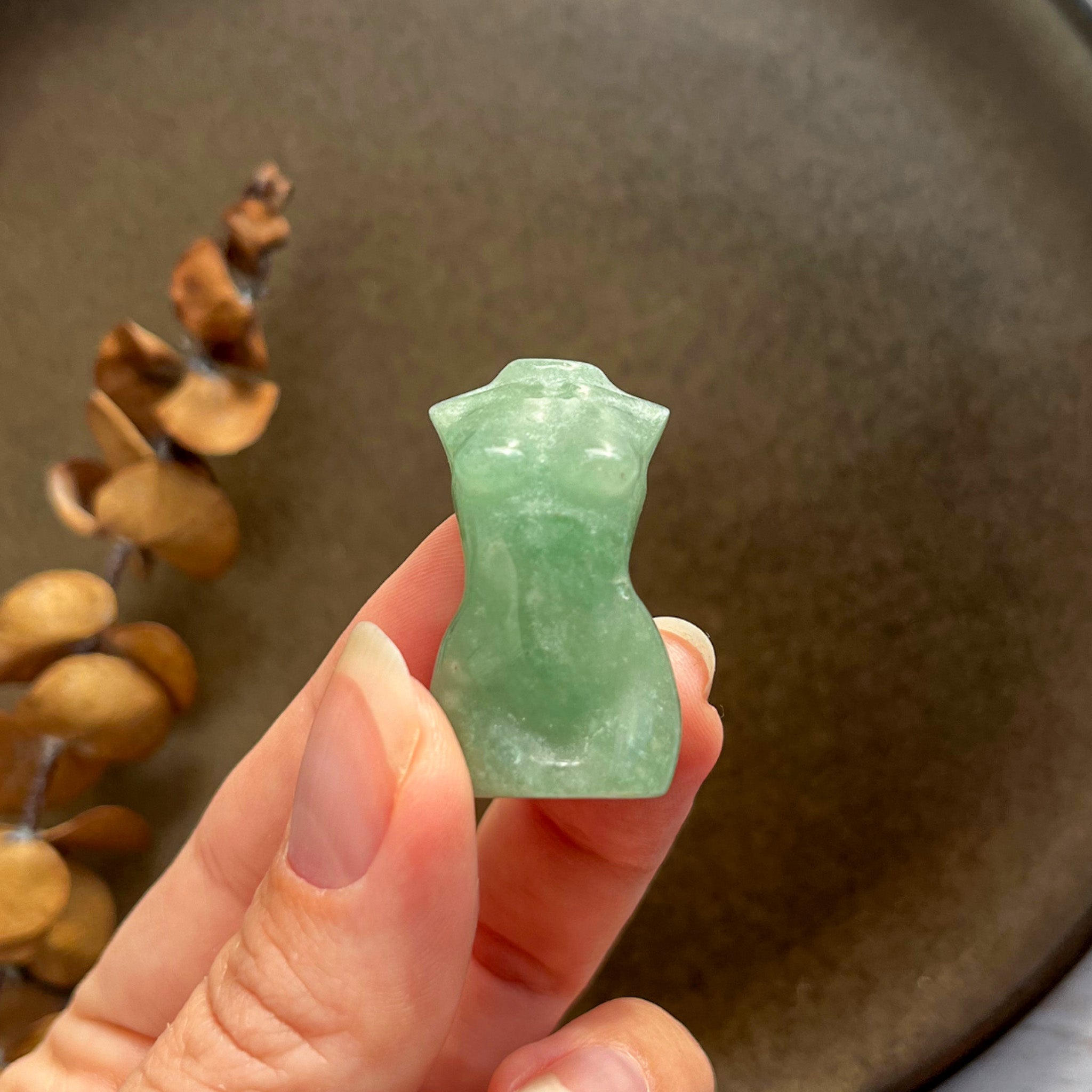 Når denne blide grønne sten tager form som en kvindekrop, forenes dens beroligende vibrationer med symbolikken af balance, selvværd og feminine kvaliteter.