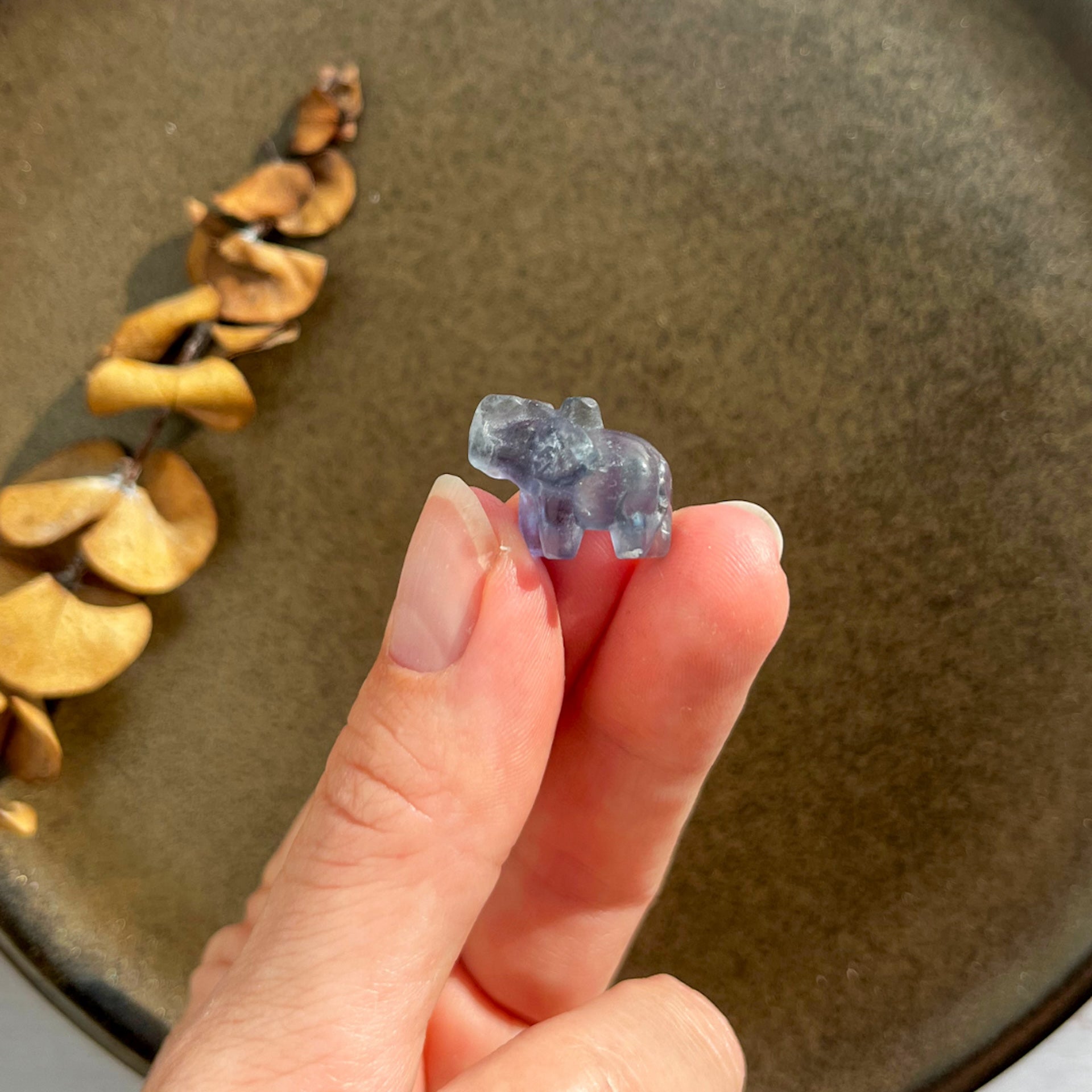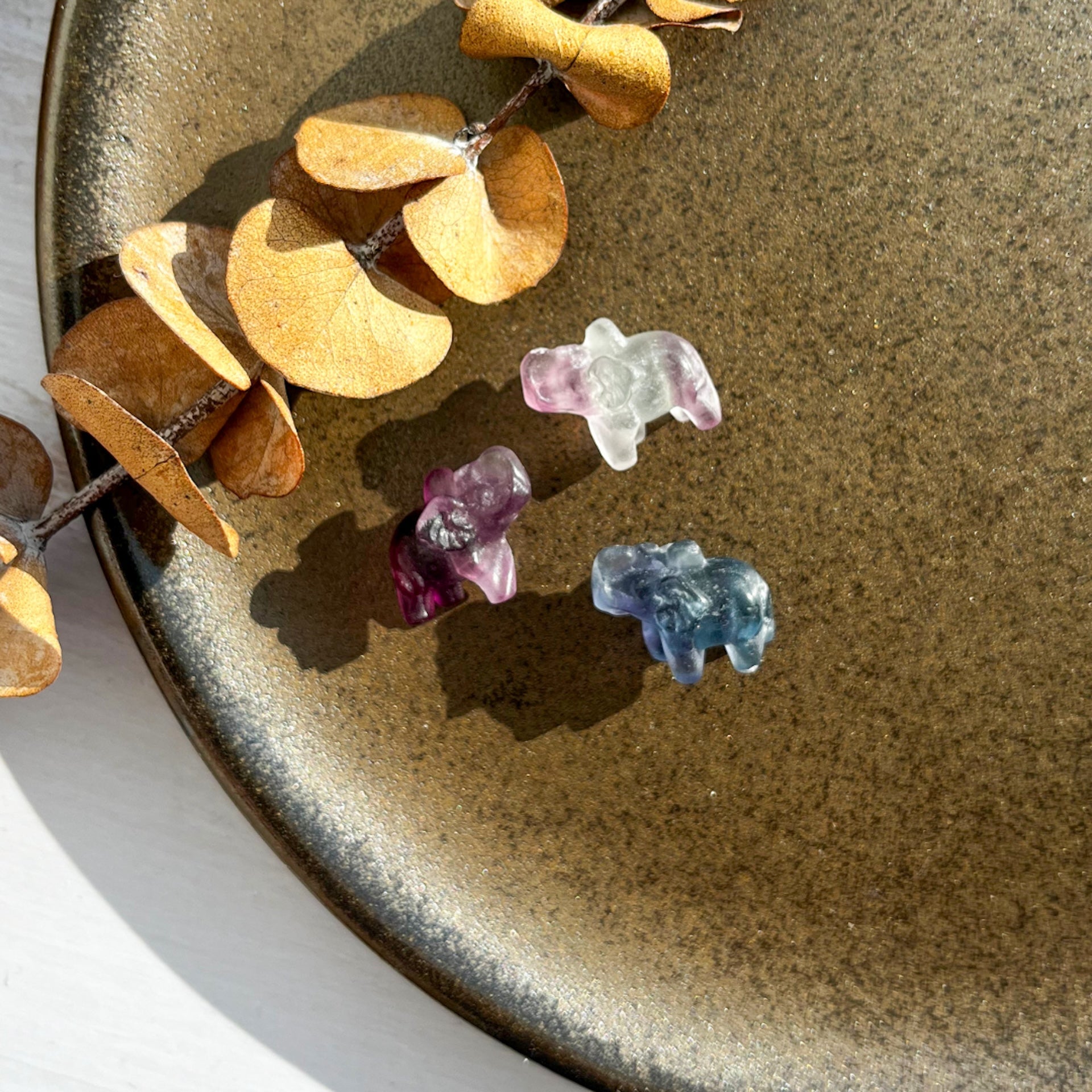 Elefanten minder os om at være vedholdende og omfavne vores indre styrke, mens regnbue fluorit hjælper med at bringe fokus og kreativitet til vores tanker og beslutninger.