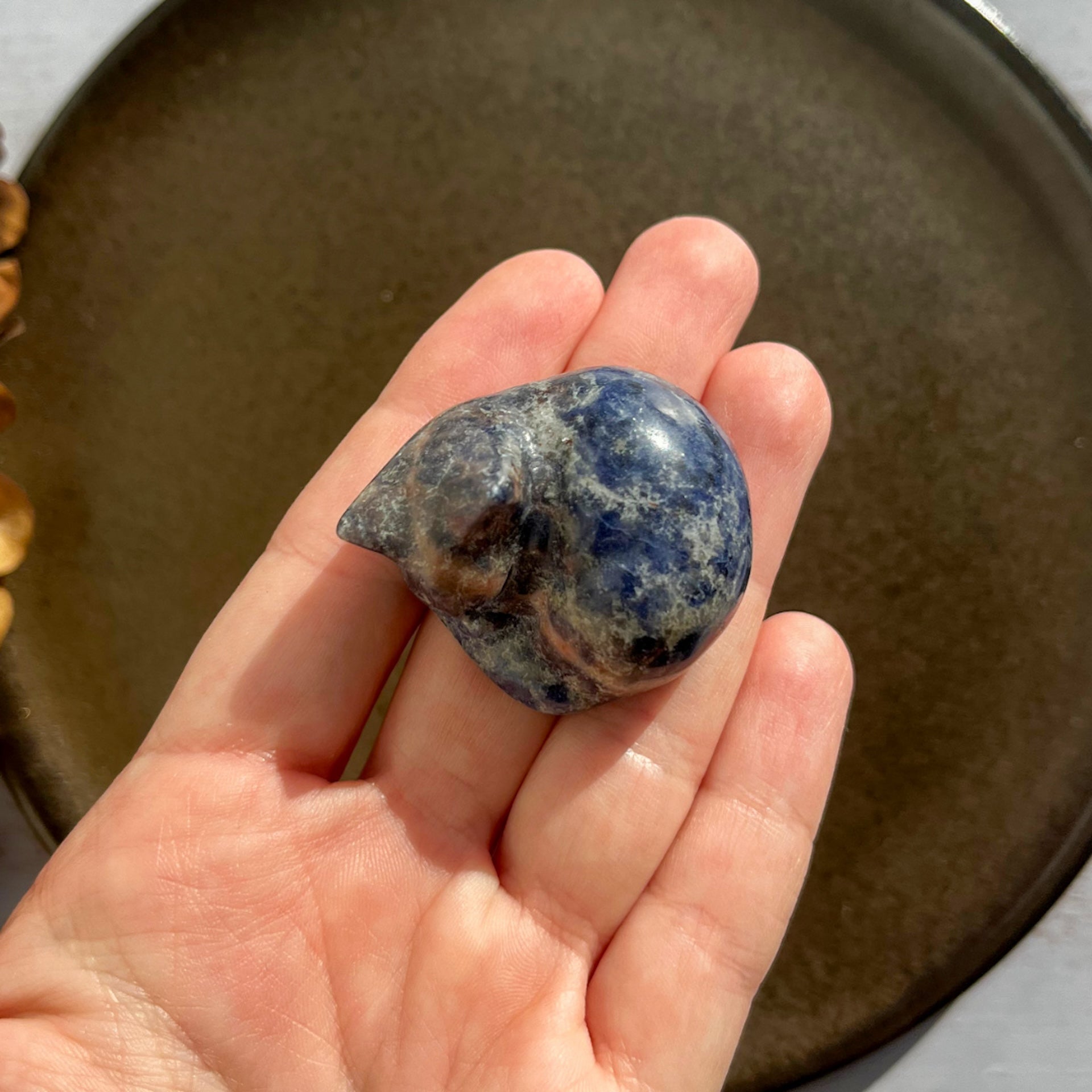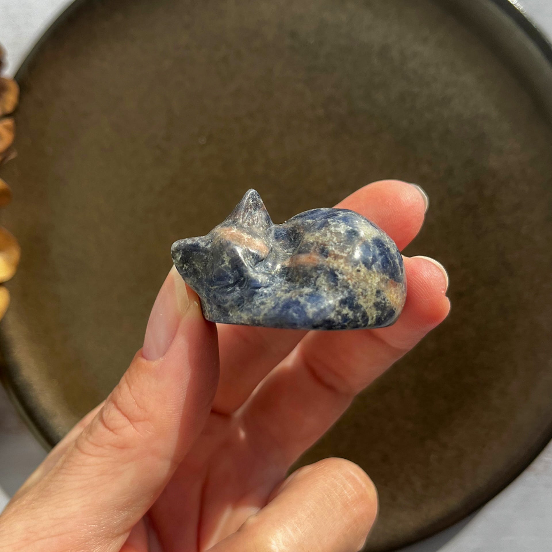 Når denne dybblå sten tager form som en kat, forenes dens kraftfulde vibrationer med kattens symbolik af intuition, nysgerrighed og ynde.