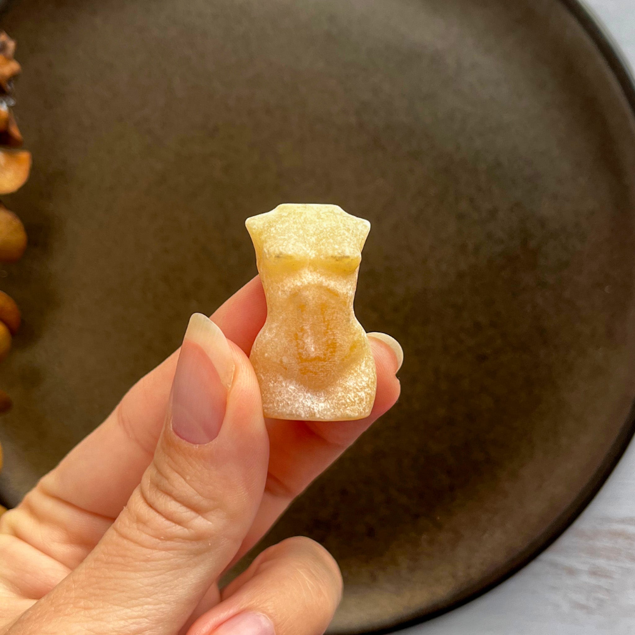 Orange calcit opmuntrer os til at åbne os for kreativitet og selvudfoldelse, mens figuren inspirerer til at omfavne vores egen kraft og se verden med fornyet begejstring.