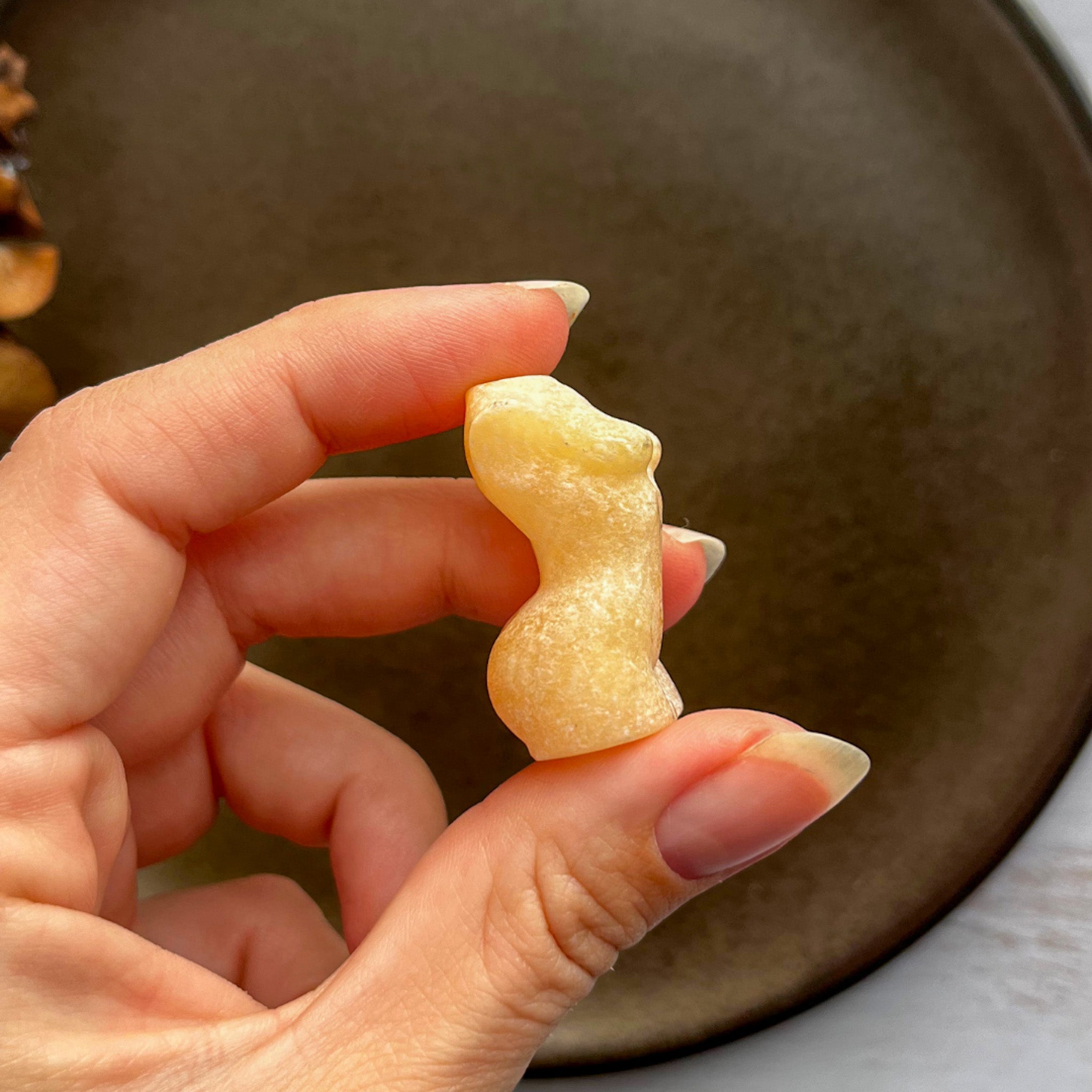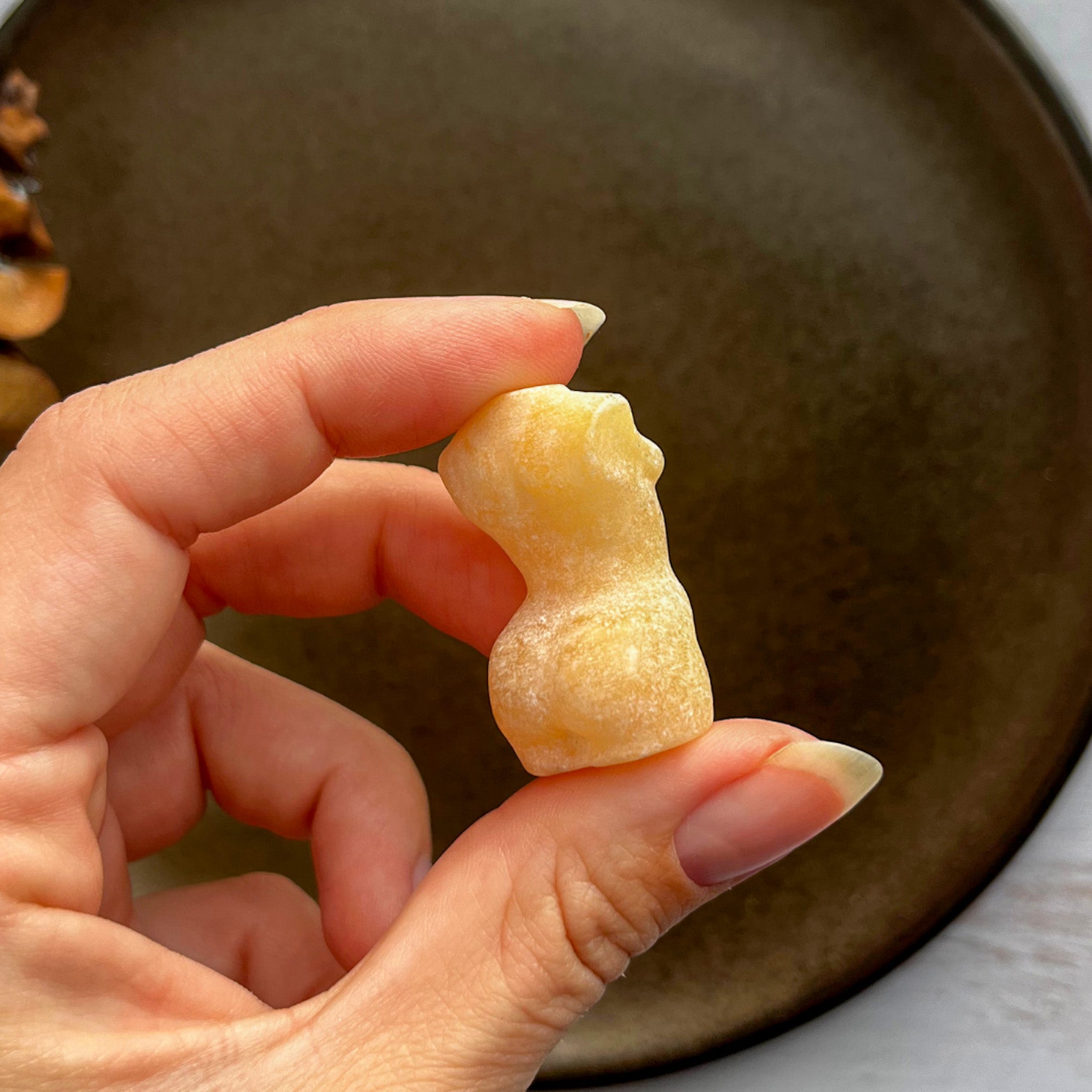 Sammen skaber orange calcit og kvindekroppen en glædesfyldt og inspirerende kombination – perfekt til dig, der ønsker at bringe mere positivitet og kreativ energi ind i dit liv. ♥︎