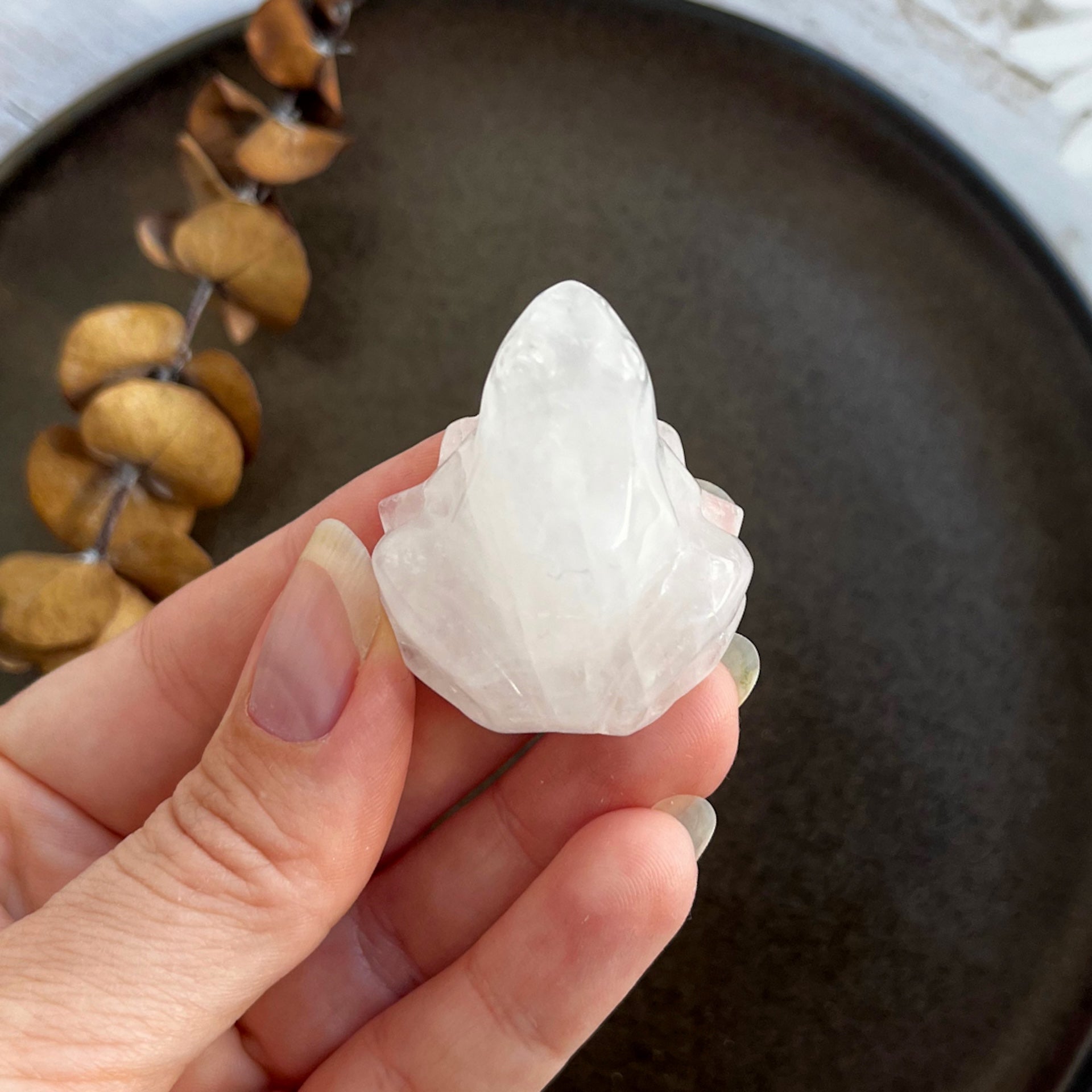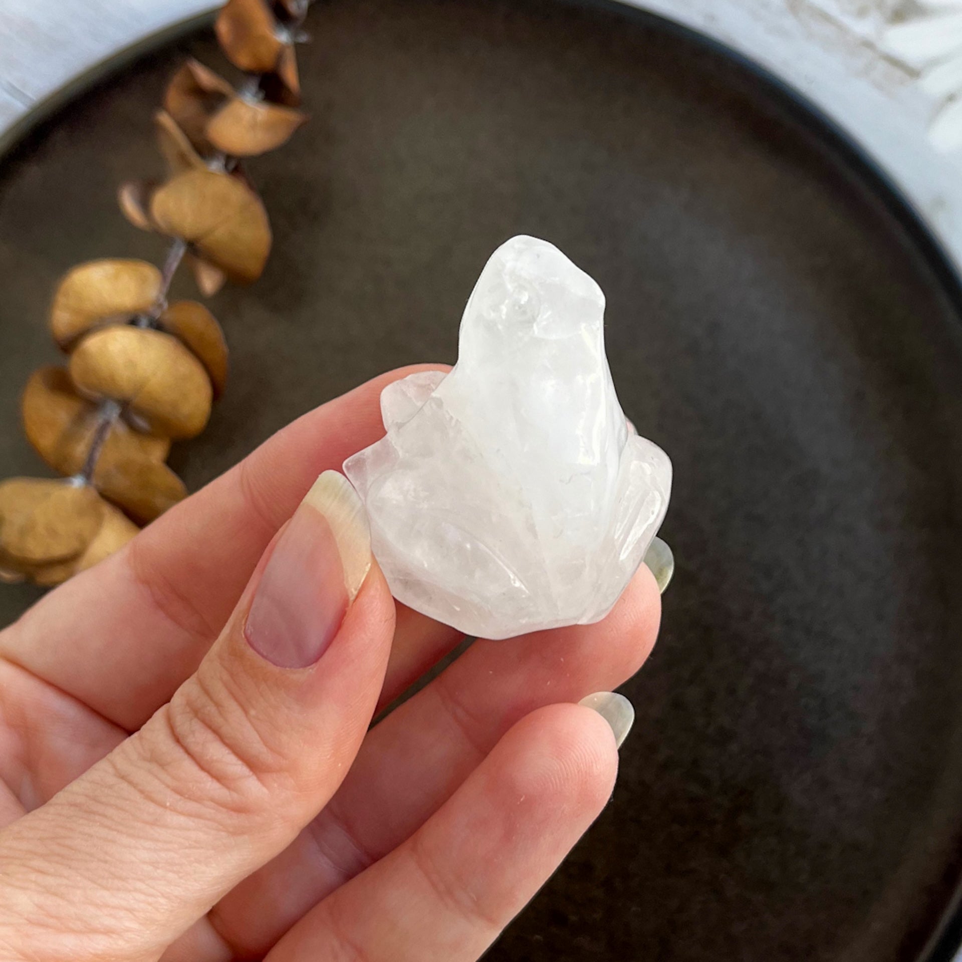 Sammen skaber bjergkrystal og frøen en harmonisk kombination – perfekt til dig, der ønsker klarhed og styrke til at navigere i livets udvikling og følge din sande vej. ♥︎