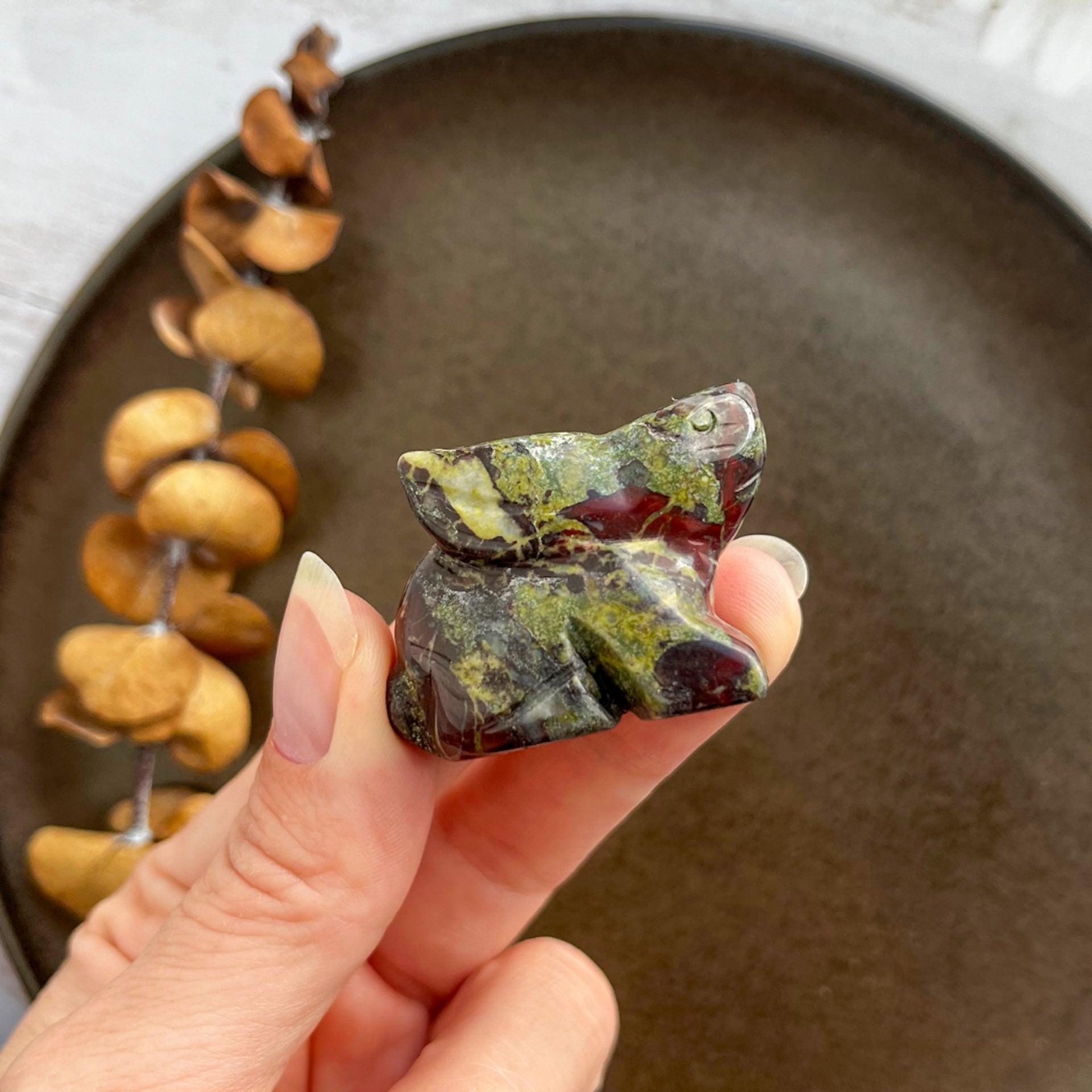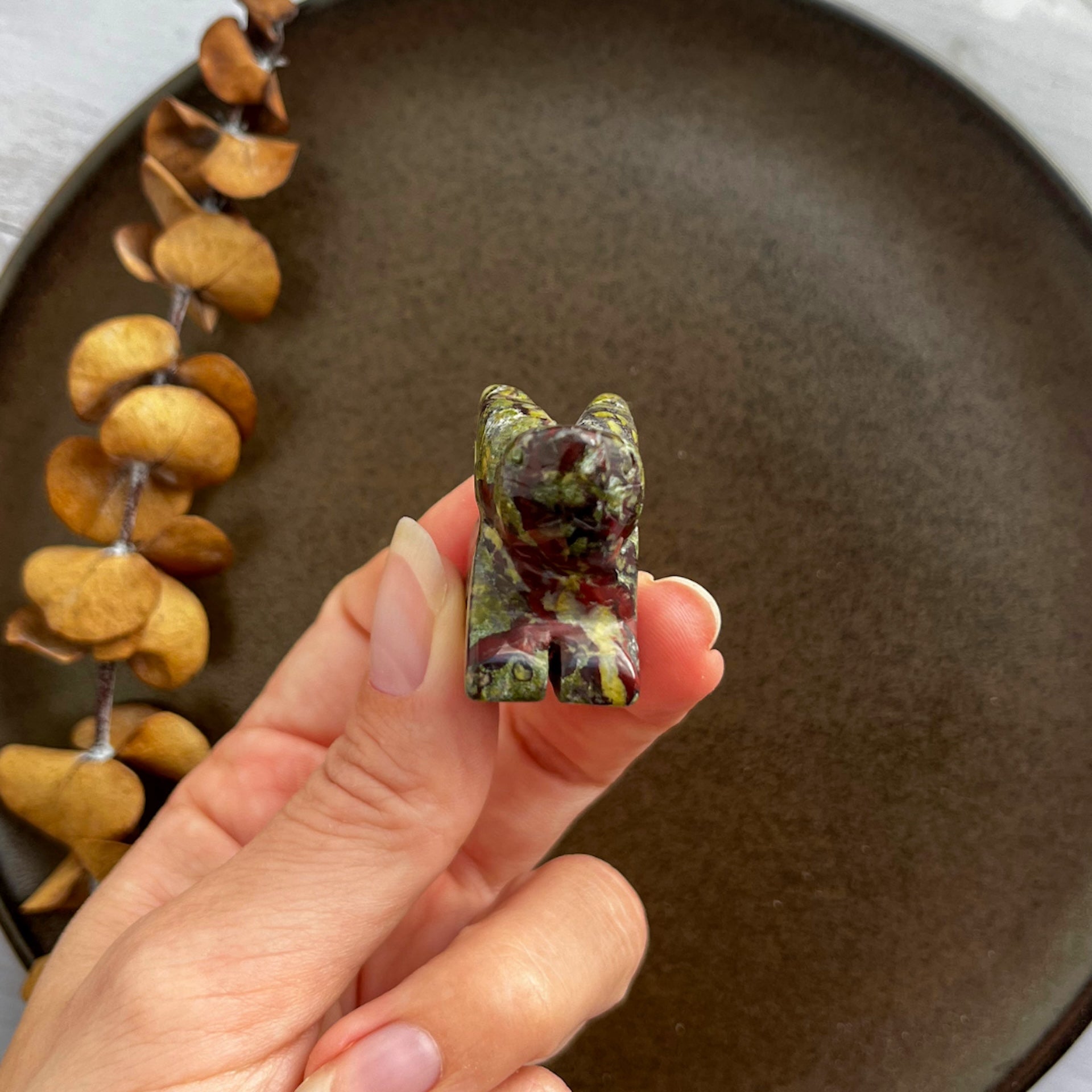 Disse smukke figurer af drageblods jaspis er det perfekte tilbehør til enhver, der ønsker at have en stærk og beskyttende krystal i sin nærhed.