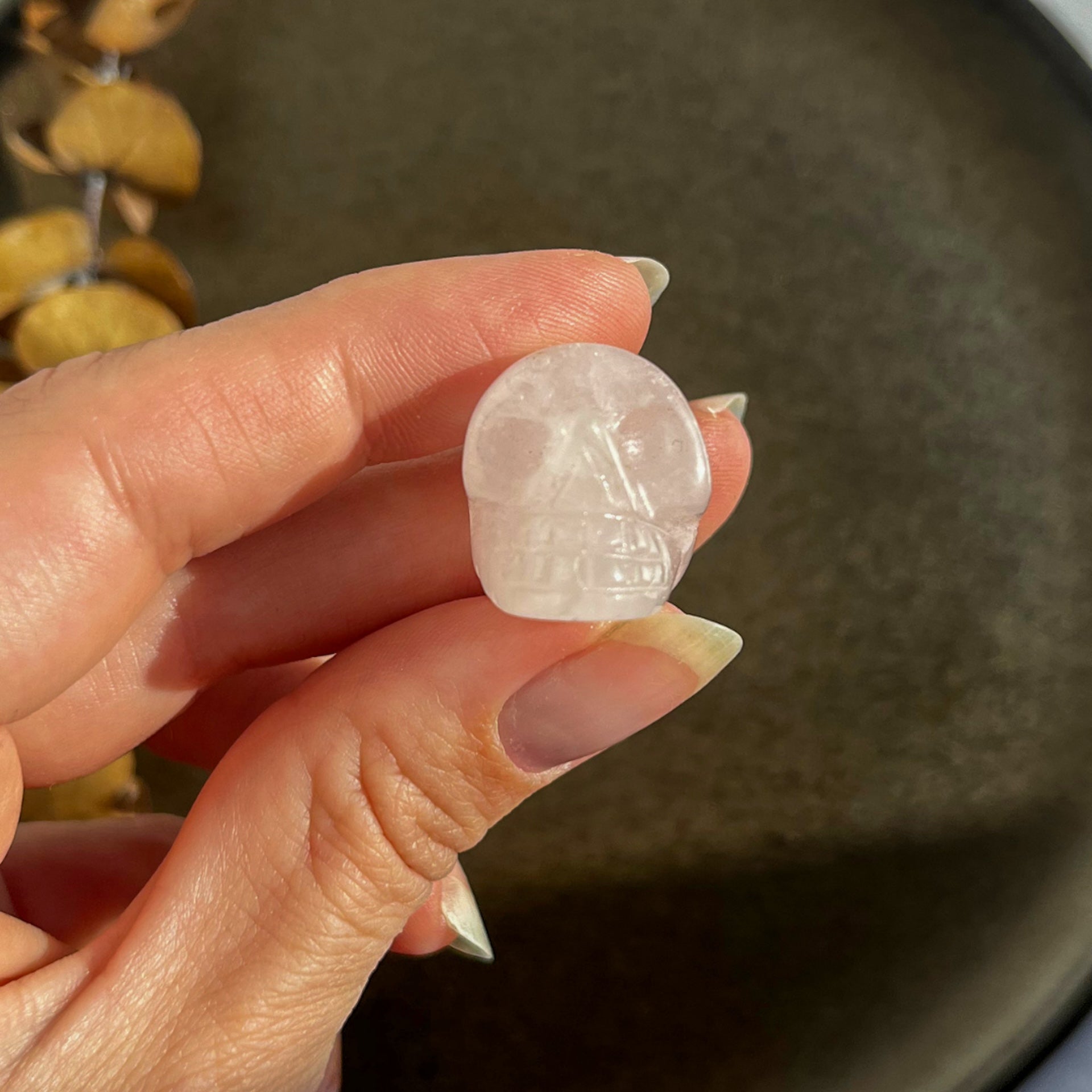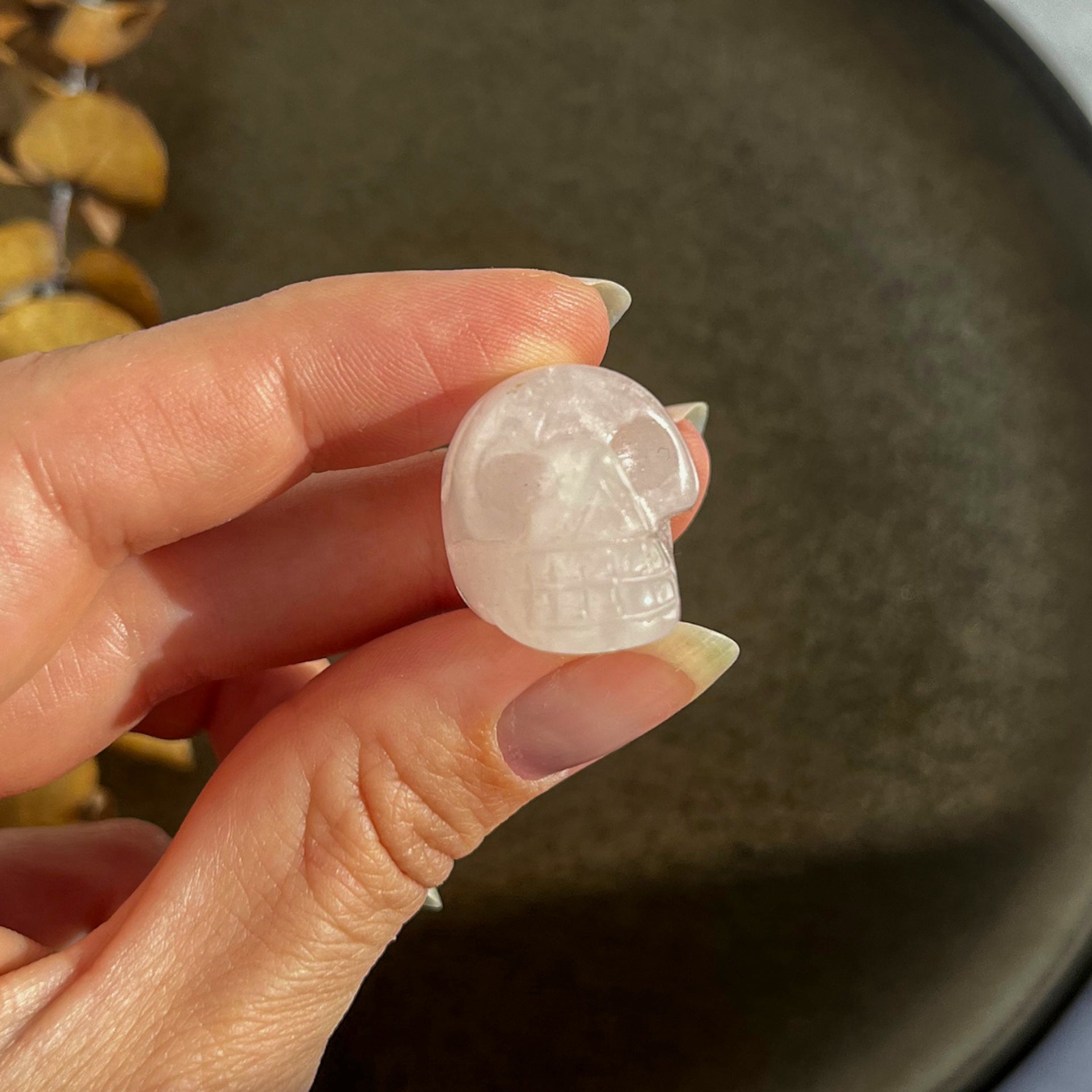 Sammen skaber rosakvarts og dødningehovedet en harmonisk kombination – perfekt til dig, der ønsker at bringe mere kærlighed og empati ind i dit liv, samtidig med at du omfavner livets forandringer og dybe oplevelser. ♥︎