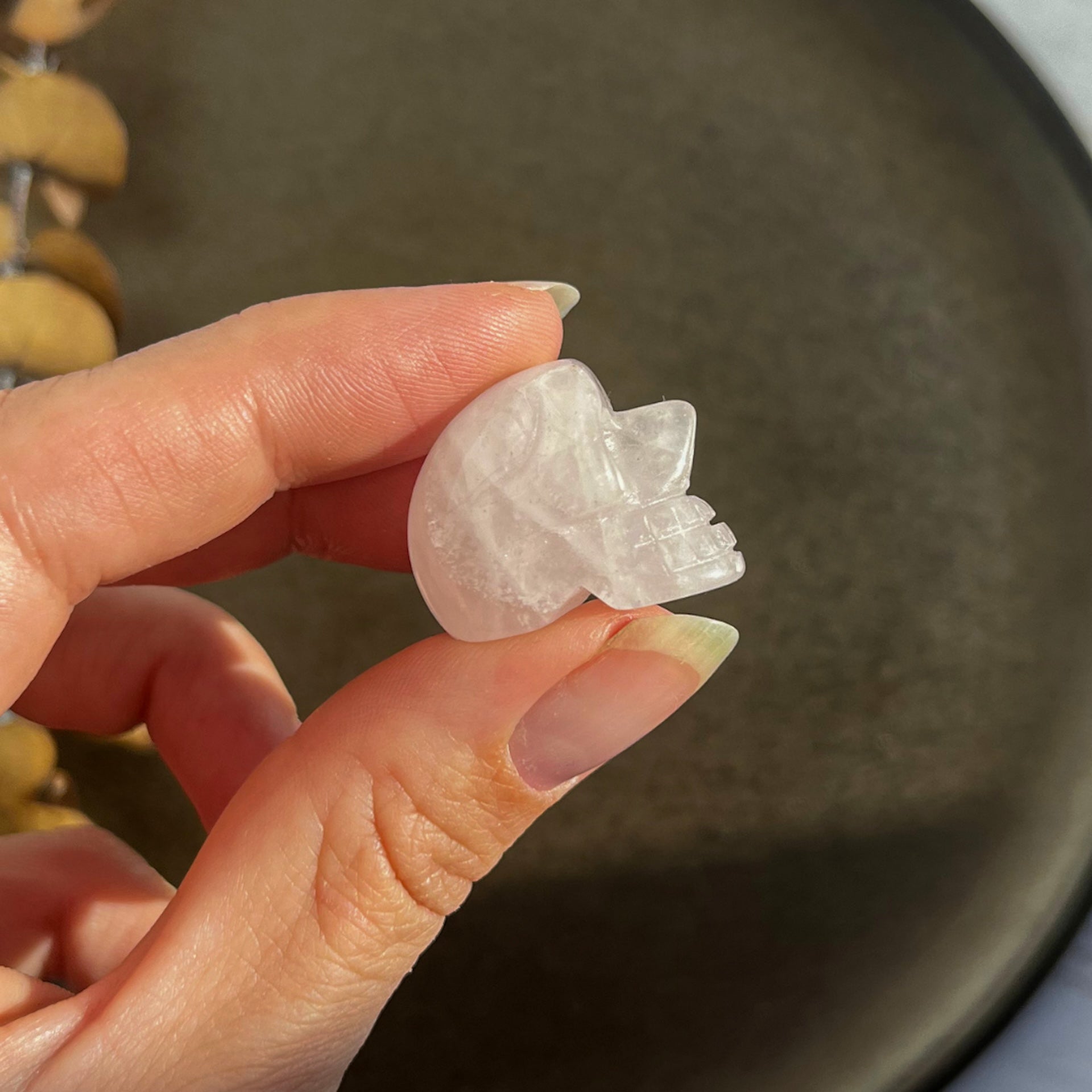Dødningehovedet minder os om at anerkende livets skrøbelighed og værdsætte nuet, mens rosakvarts opfordrer os til at åbne vores hjerter for kærlighed og selvkærlighed.