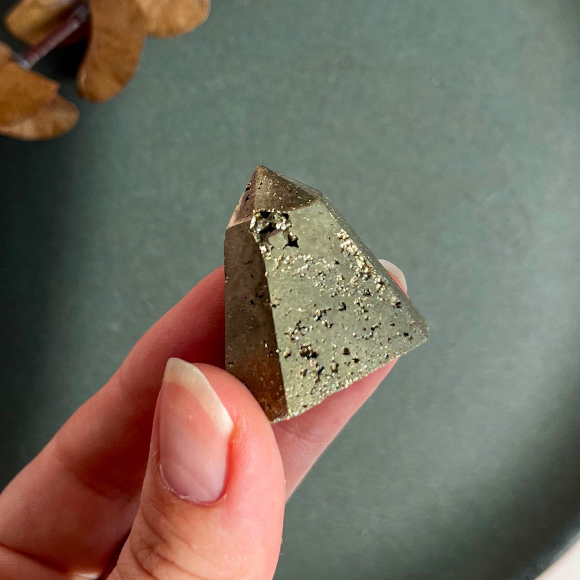 Pyrit er en utroligt smuk og meget powerfuld krystal - somme tider forvekslet med guld på baggrund af sit metalliske skær.