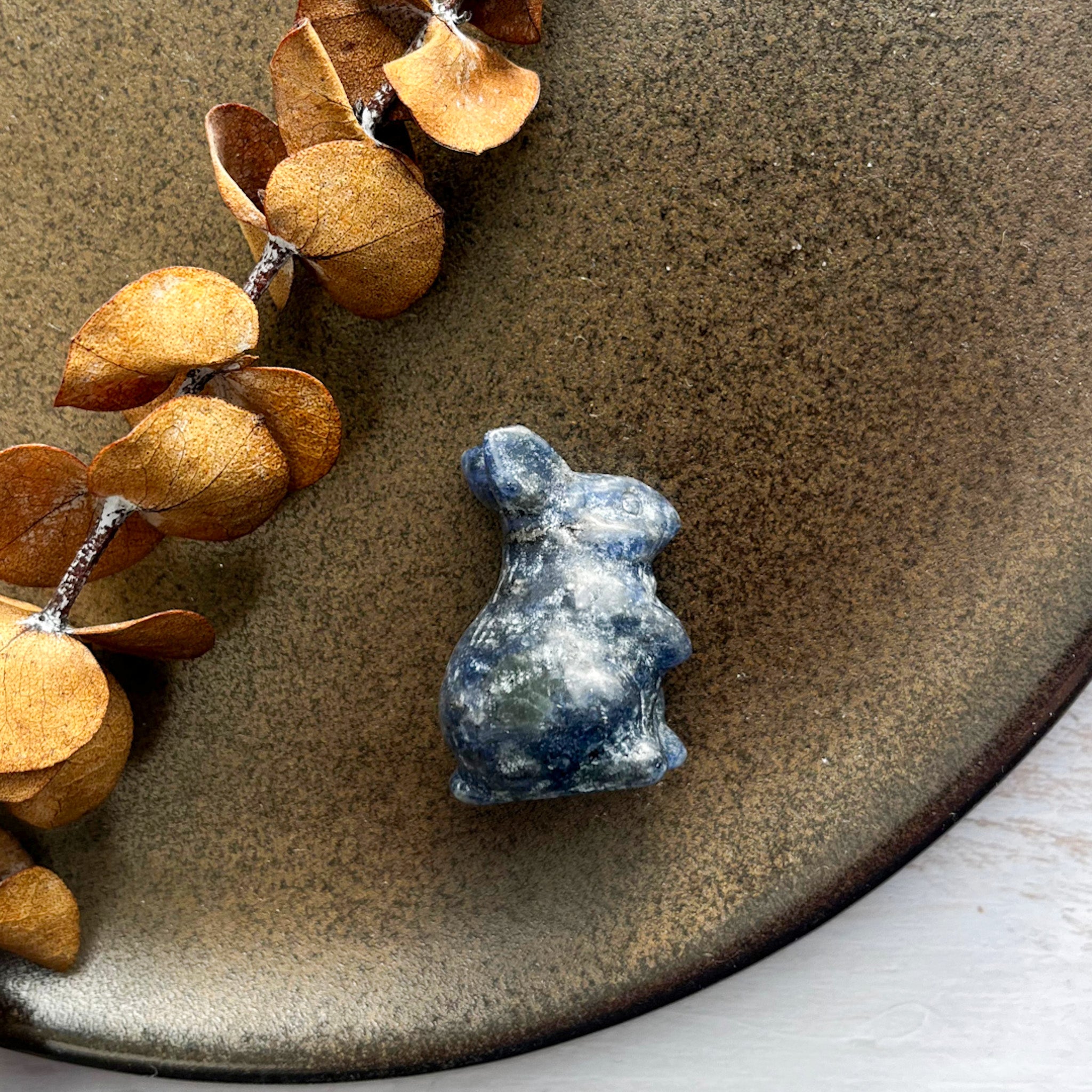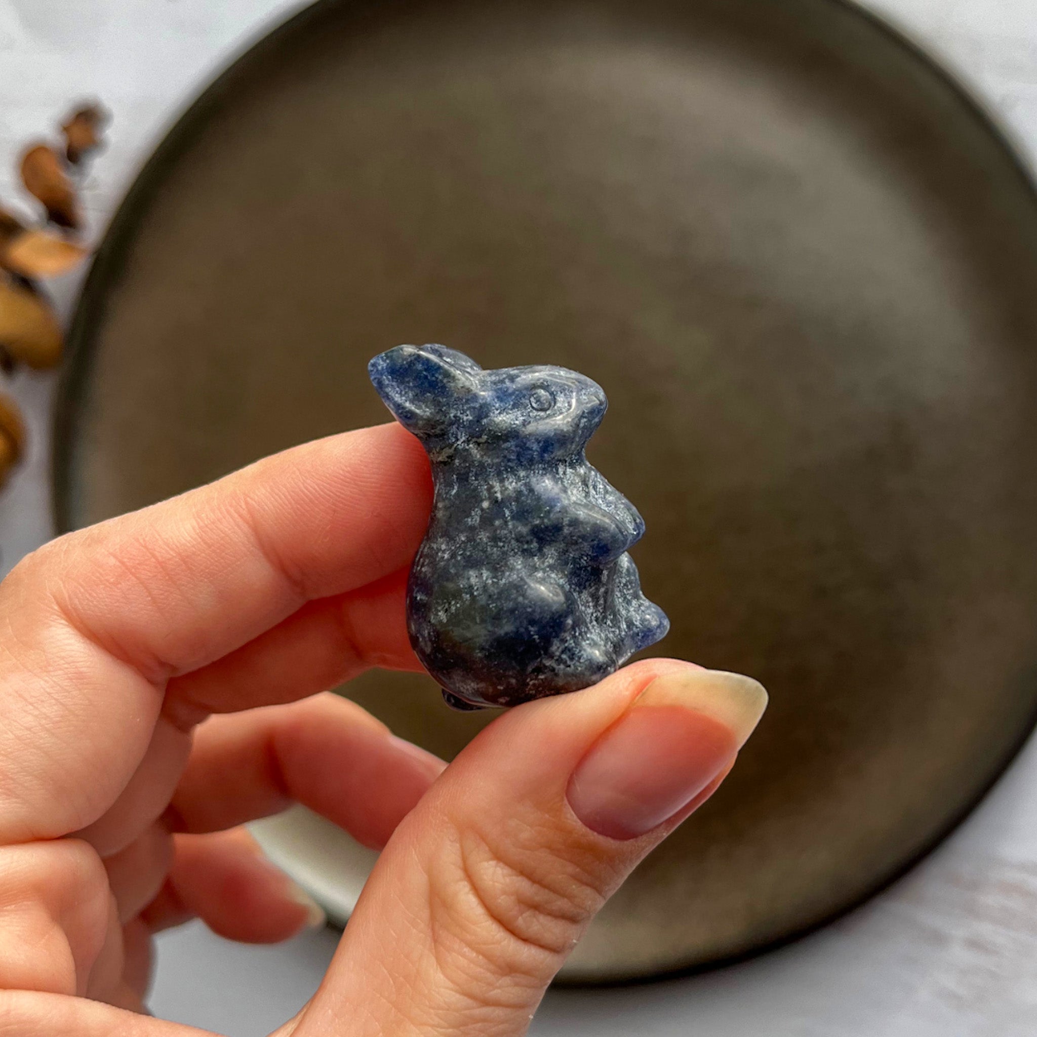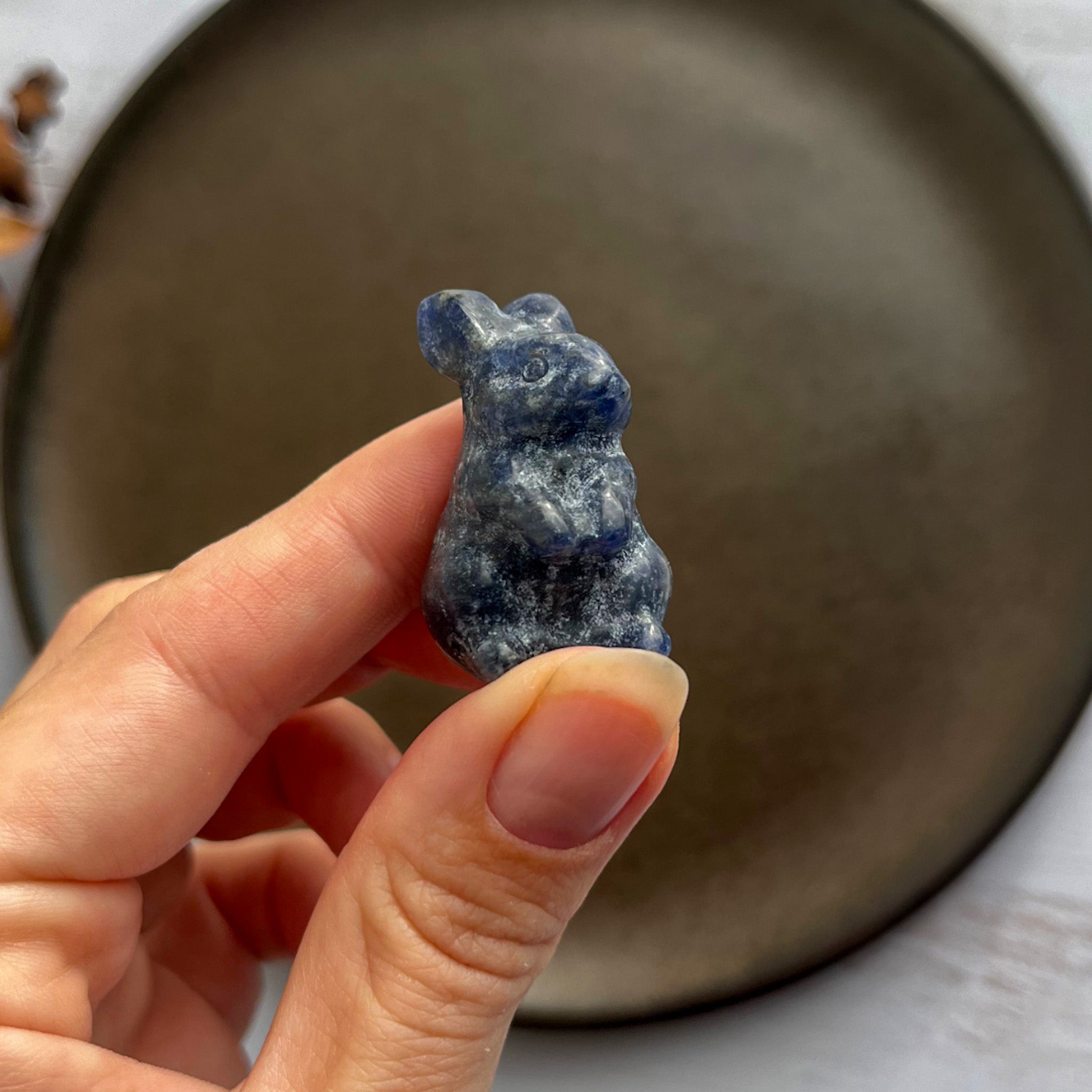 Når denne dybblå sten formes som en kanin, forenes dens beroligende vibrationer med kaninens symbolik af ny begyndelse, nysgerrighed og leg.
