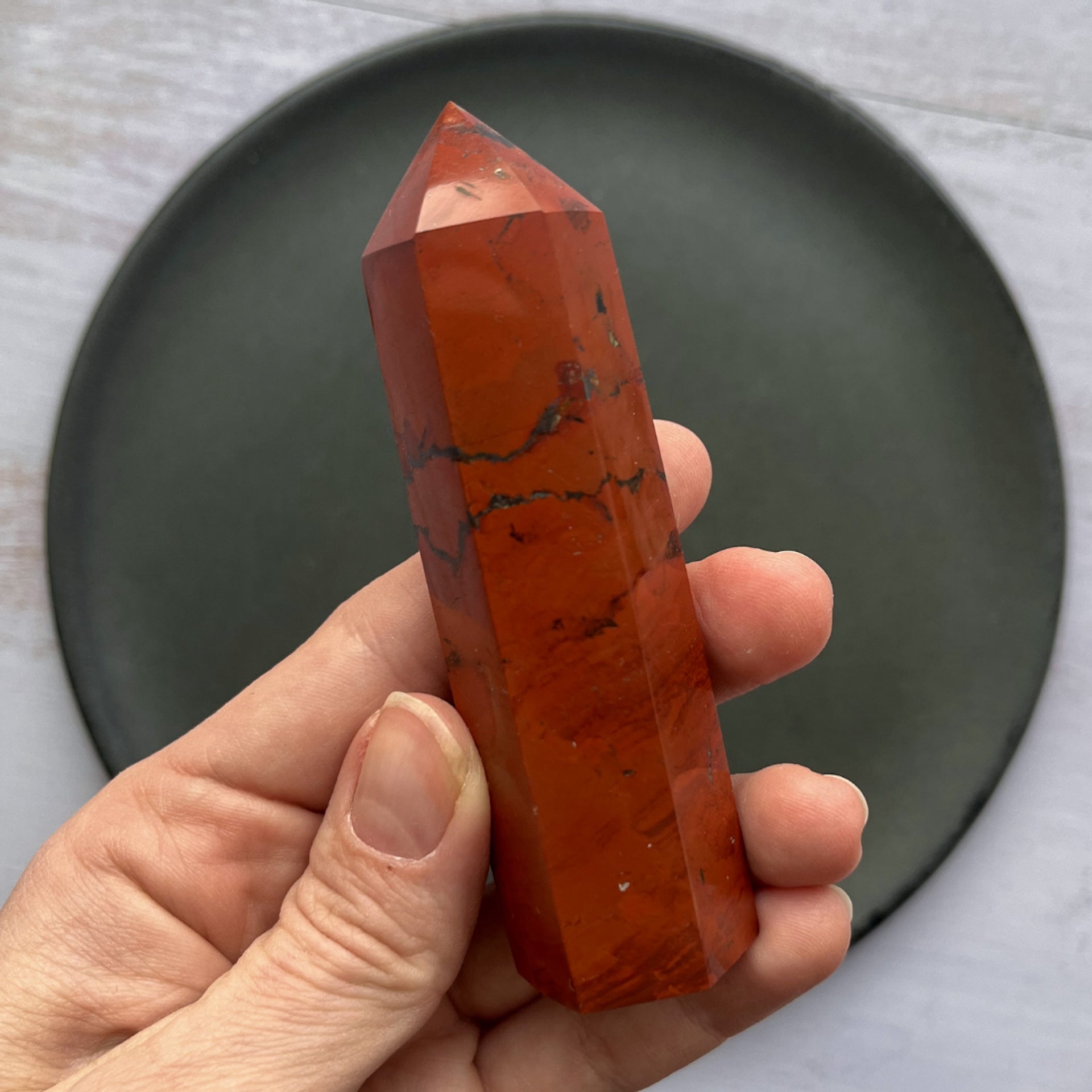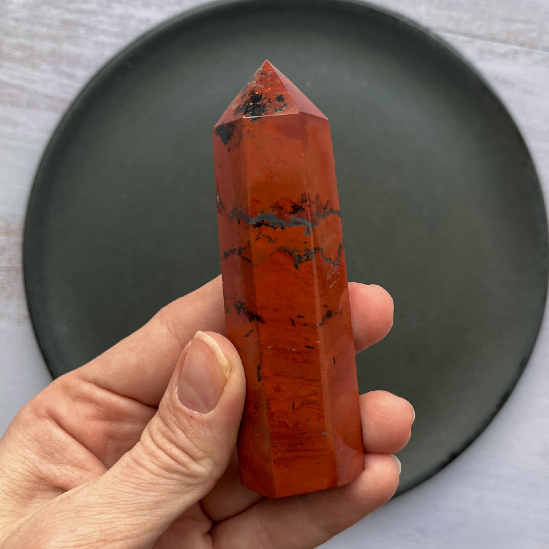 Dette røde jaspis krystaltårn er ikke blot et fascinerende naturligt kunstværk, men også en kraftig healer. Det kan være særligt gavnligt for dig, der ønsker at finde ro, styrke din beslutsomhed og fremme et dybere forhold til naturen og moder jord ♥︎