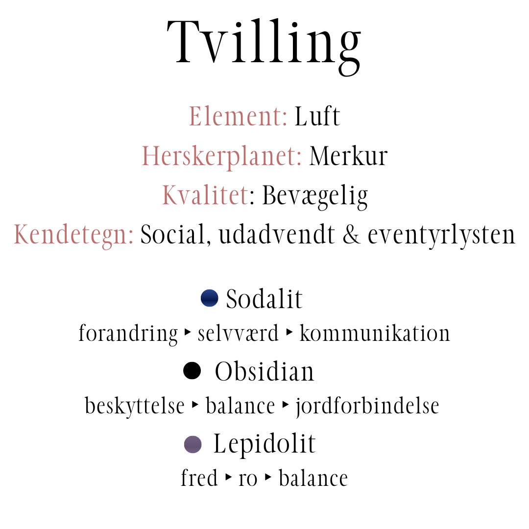 ♥︎ Obsidian som bringer ro, balance og grounding som modvægt til tvillingens flyvske natur.